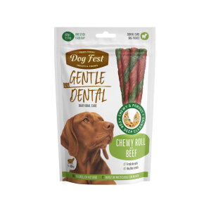 Dental Chewy Roll - z govedino - okusna in funkcionalna zobna poslastica, zasnovana za vsakodnevno ustno higieno odraslih psov. Dental Chewy Roll z govedino združuje naravne sestavine in posebeno obliko, ki omogoča učinkovito čiščenje zob, osvežitev daha in dolgotrajno stimulacijo psa.