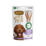 Posebna tekstura omogoča Twisterju, da prodre med zobe in nežno masira dlesni, hkrati pa spodbuja naravni mehanizem čiščenja ustne votline pri psih