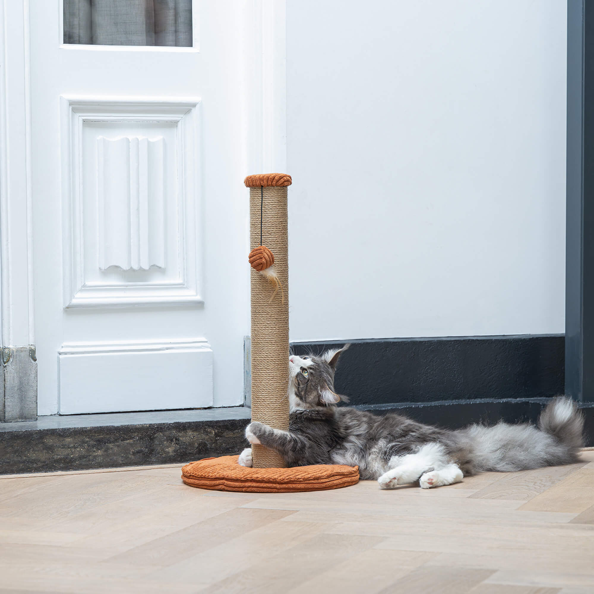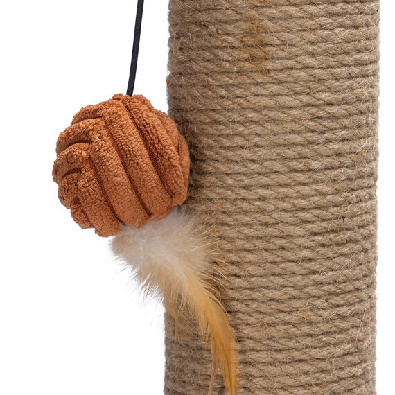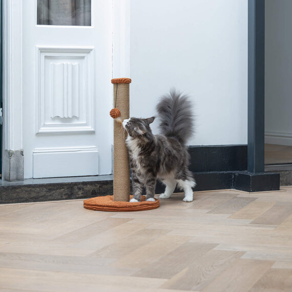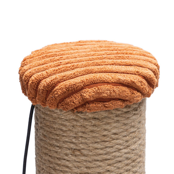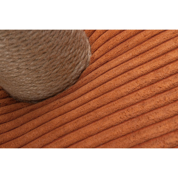 Praskalnik za mačke Designed by Lotte Ribbed ni le praktičen za vašo mačko, temveč se bo odlično podal tudi v vaš dom. Dno tega praskalnika je izdelano iz čudovite, luksuzne tkanine z rebrastim vzorcem. Stolp je ovit v vrv iz jute, kar vaši mački omogoča, da praska vertikalno do mile volje. Z zagotovitvijo tega praskalnika boste poskrbeli, da bo vaš pohištvo zaščiteno pred praskanjem. Dodatni element zabave je igrača za mačke – žogica s peresom.